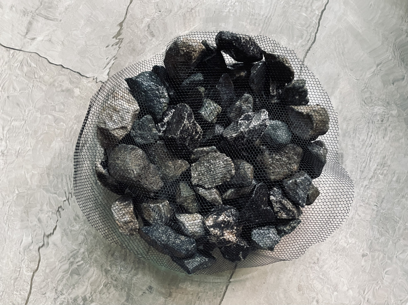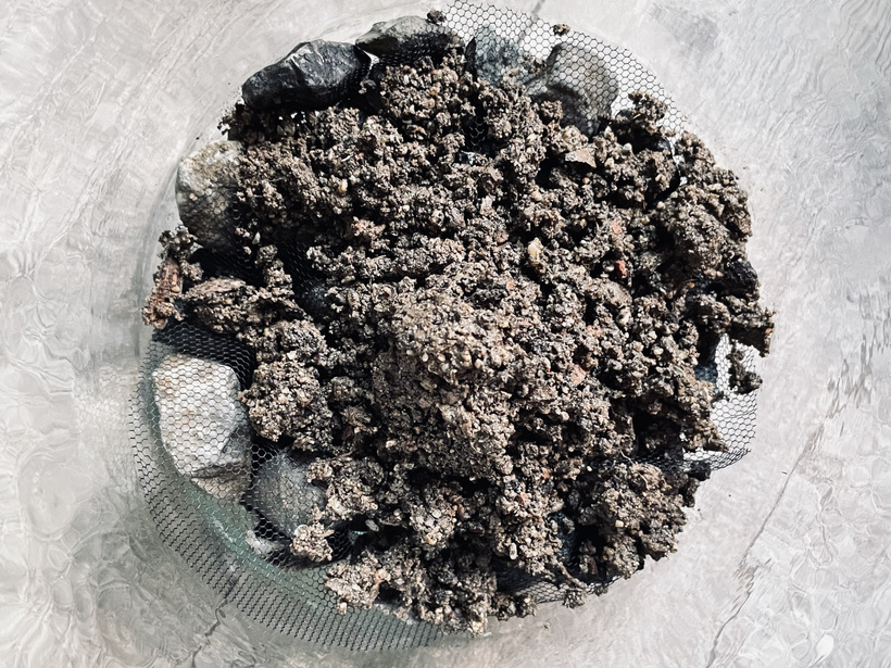 Na tejto fotke vidíš, ako sieťka oddeľuje hlinu od kameňov: