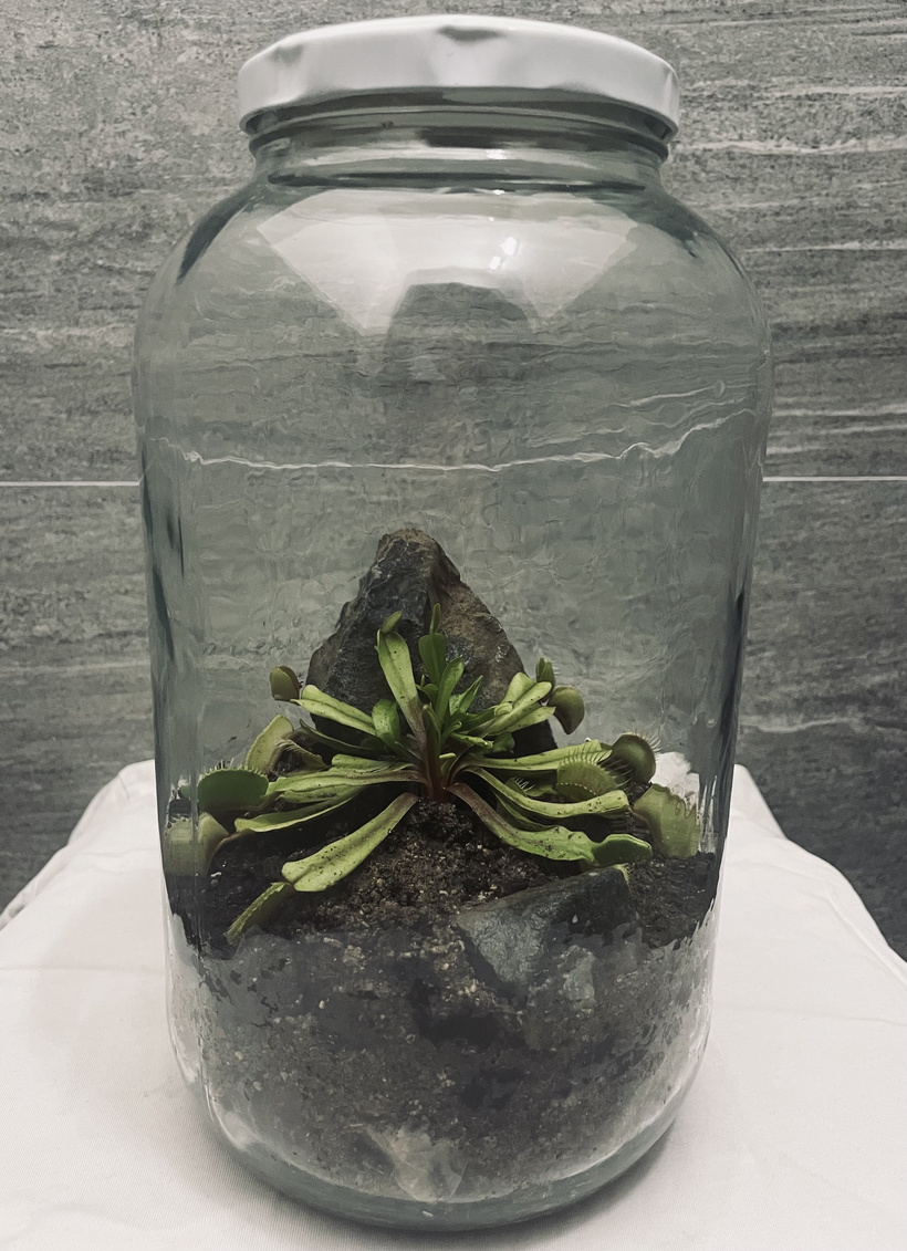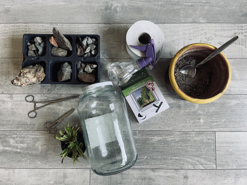 Dôvod, prečo som sa rozhodla pustiť sa do toho práve teraz, bola mäsožravá rastlina, ktorú som dostala od môjho mandžula. Keď som zistila, že sa jej v plantáriu môže veľmi páčiť, oprášila som moje staré pinterestové albumy s plantáriami a prechádzala som si, čo všetko budem potrebovať - a vlastne aj to, ako na to :) .