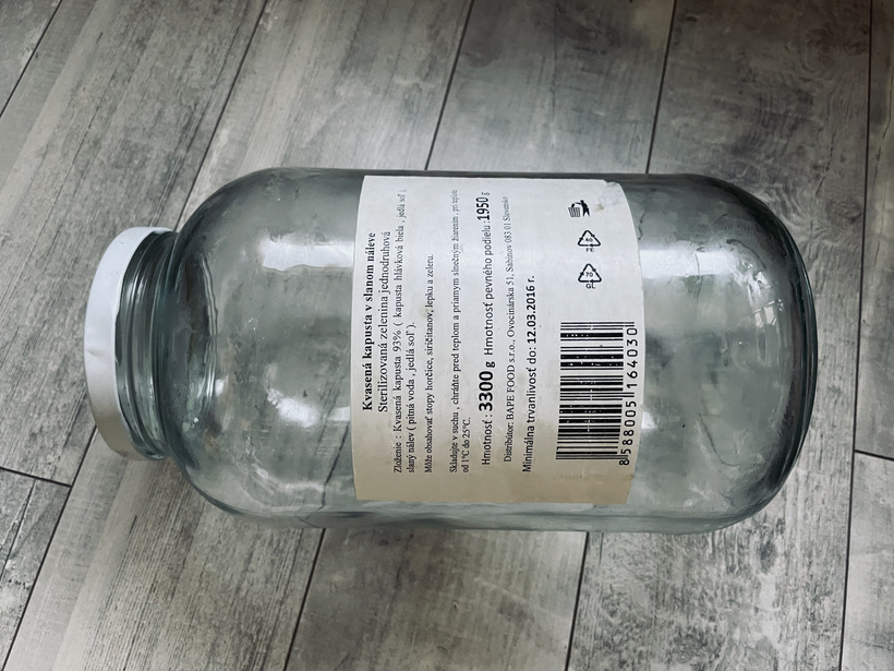 - sklenenú nádobu (mám pohár s objemom viac ako 3 litre)