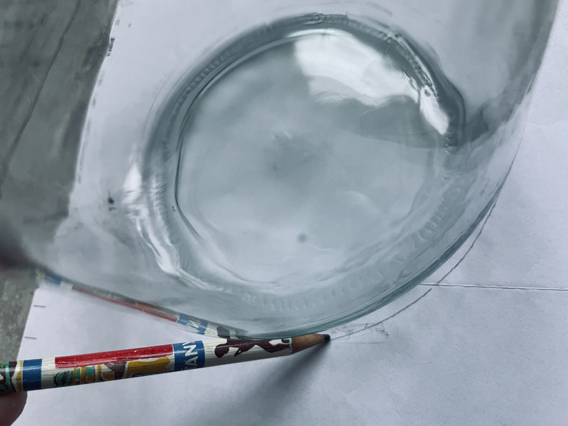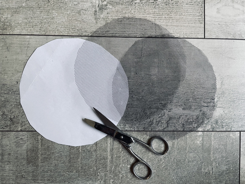 Aby som vystrihla dostatočne veľký kruh, obkreslila som si dno pohára na papier, na ktorý som potom priložila sieťku a vystrihla som dva rovnaké kruhy. Dva preto, lebo sieťka bola dosť tenká, takže som chcela mať hrubšiu vrstvu.