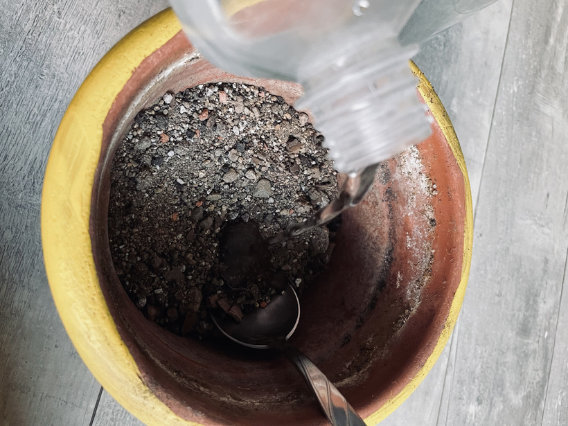 Ako som už napísala - ja som namiešala, čo som uznala za vhodné - a urobila som z toho "tak akurát vlhkú zem", aby som ju nemusela veľmi polievať až po zasadení rastlinky: