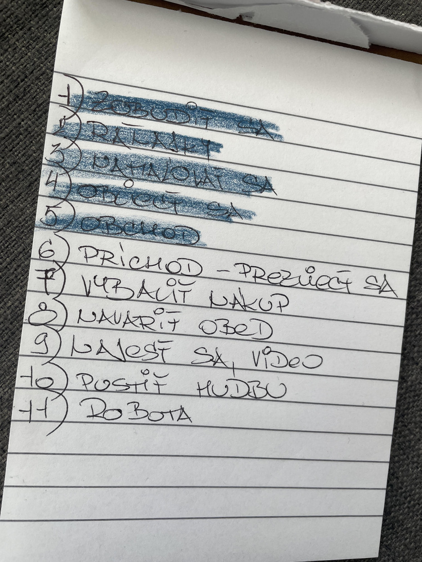 Naučte sa ale tento zoznam písať správne. Vyvarujte sa tomu, aby ste ho zahltili nepodstatnými vecami, lebo na konci dňa zistíte, že máte splnených iba zopár "úloh". Toto môže byť celkom frustrujúce, preto odporúčam nebrať toto písanie zo začiatku tak vážne a nájsť si vlastný systém, ktorý časom vyšperkujete.
