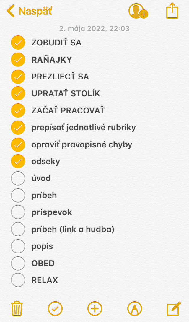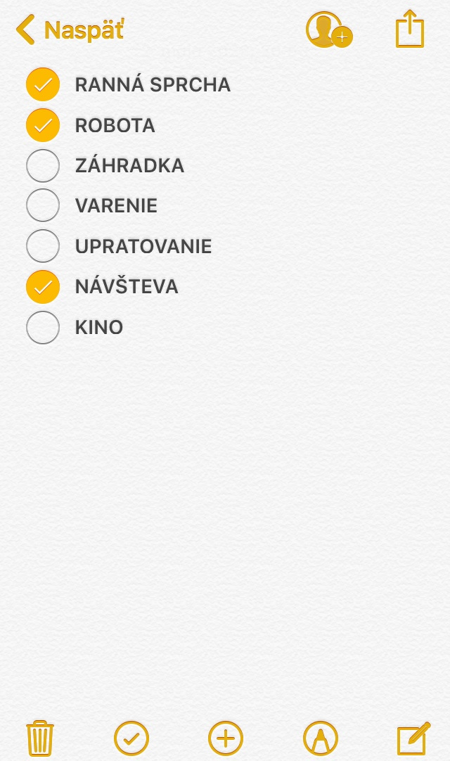 Dá sa tu jednoducho vytvoriť napríklad aj zoznam, v ktorom si jednotlivé úlohy postupne počas plnenia označujete ako "splnené".