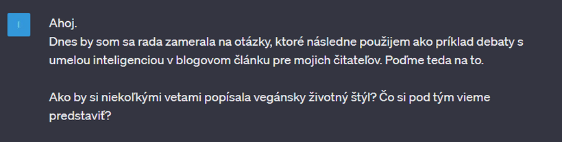 Teraz si teda ukážeme, čo hovorí AI na vegánstvo. Dostala som odpovede na niekoľko otázok a nezávislý pohľad na moje presvedčenia. Poďte sa pozrieť na to, čo som sa dozvedela.