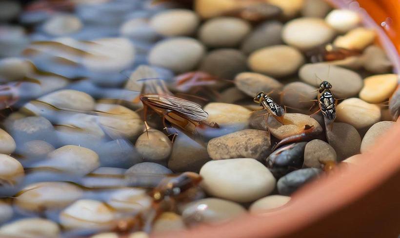 Nachystajte na dostupné miesto misku s vodou. Dbajte na to, aby bola voda čistá a do misky pre hmyz dajte kamene, aby sa mohol hmyz bezpečne dostať z vody, ak by do nej náhodou spadol.