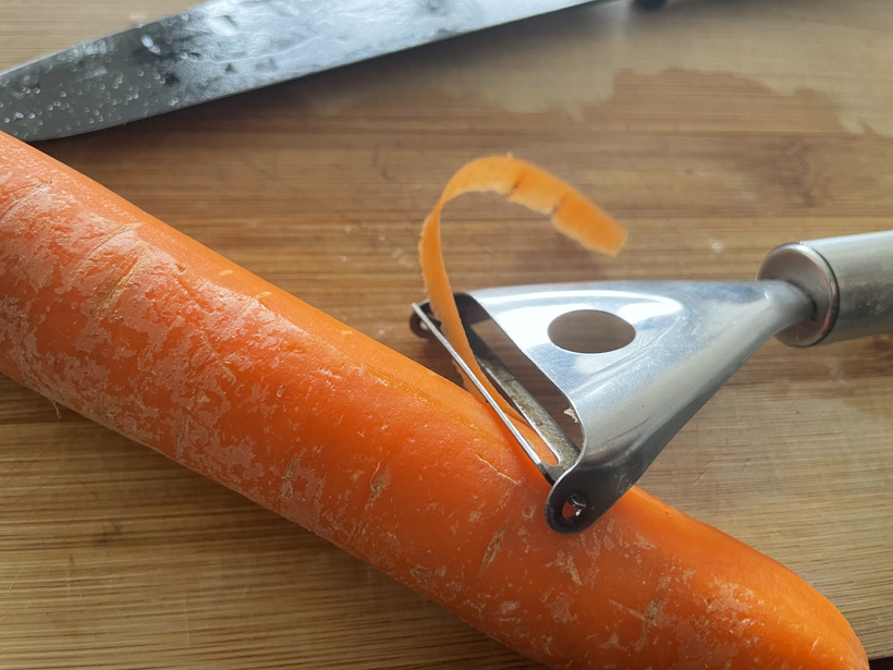 1.) Najskôr si ošúpeme zemiaky a mrkvu a nakrájame ich na malé kúsky.