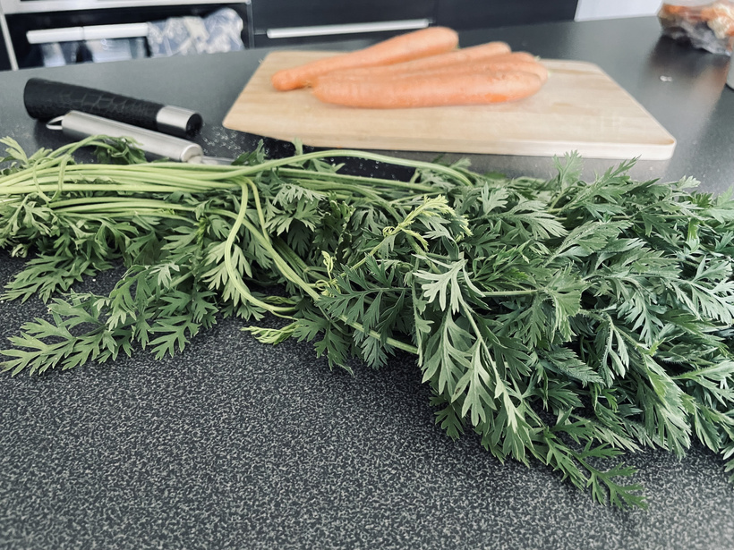 ° Mrkvová vňať je na pesto výbornou ingredienciou - pozor ale na jej chuť, lebo môže byť horká. Nechcem nahovárať na nekalosti, ale je fajn lístok vňate ochutnať ešte v obchode. Tak budete mať istotu, že si domov neprinesiete nepoužiteľnú hrču horkej mrkvovej vňate.
