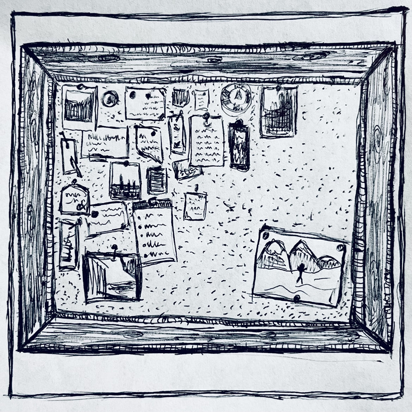 Ako mladšie dieťa až do tínedžerského veku som mala na stene pri poschodovej posteli zavesenú (pribitú. najväčším klincom, čo som našla tatovi v šope) nástenku, na ktorú som pripevňovala všelijaké veci. Boli na nej moje výtvory, čo sa mi podarilo, cestovné lístky z miest, ktoré som navštívila, drobné darčeky,..