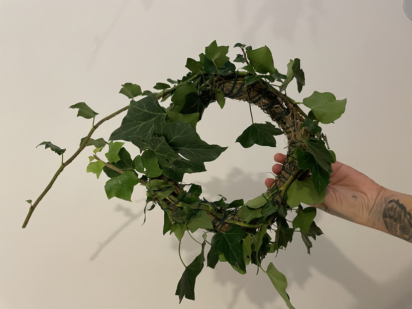 Tentokrát som ale chcela, aby bol výsledok viac "listnatý" a pri prechádzke lesom som si všimla všadeprítomný popínavý brečtan. Preto som si povedala, že je tým pravým kandidátom. Okrem toho je možné ho neskôr vrátiť do prírody a on si pôjde svojím životom ďalej. Je to totiž takmer nezničiteľná rastlina, ktorej sa darí vo všetkých podmienkach.