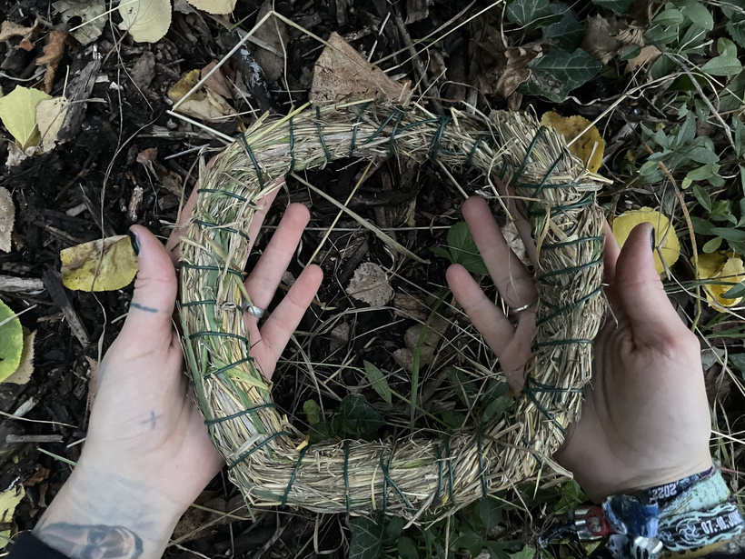 Pustíme sa hneď do tvorby - najskôr si povieme, čo budeš potrebovať. Naša babička používala ako základ polystyrénové kruhy. Ja takýto kruh považujem za ťažko rozložiteľnú zbytočnosť, za ktorú nechcem vyhadzovať peniaze. Preto som si povedala, že vymyslím niečo, čo bude pochádzať z prírody - a to je úlne obyčajná suchá tráva.