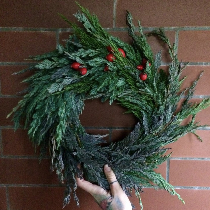 Poslednýkrát, keď som robila podobný venček, použila som odrezky okrasnej tuje a výsledok bol takýto: